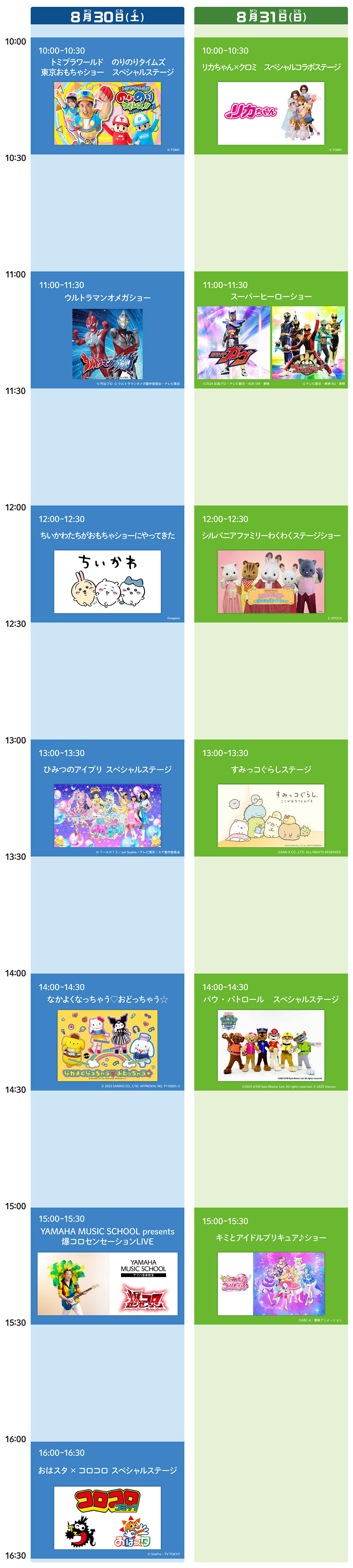 ※混雑によりご覧いただけない場合や、天災、その他の事情によりステージが中止となる場合もございますので、予めご了承ください。